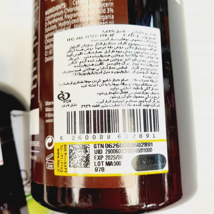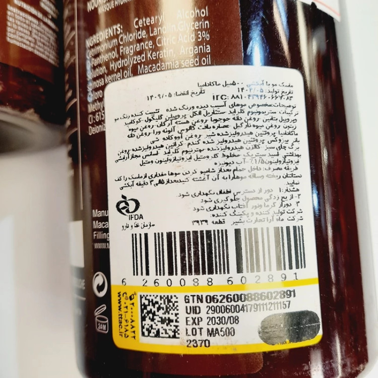 ماسک مو فری سولفات ماکادمیا با آبکشی 500 میل دارای 3 مدل