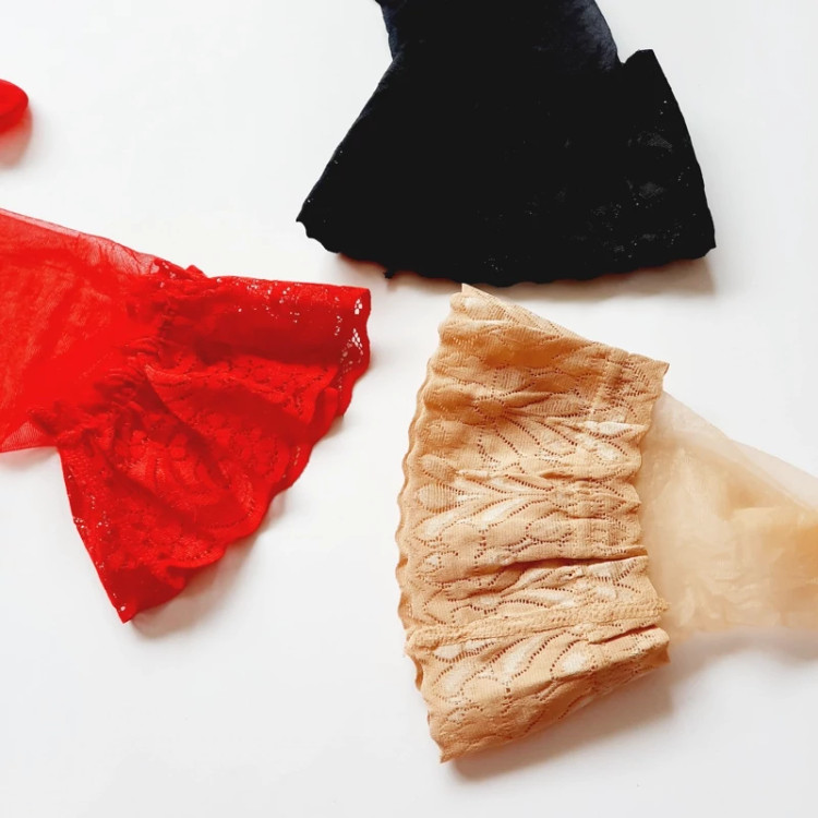 جوراب بلند شیشه ای زنانه مدل تور ژل دار رنگ کرم و مشکی و قرمز و سفید