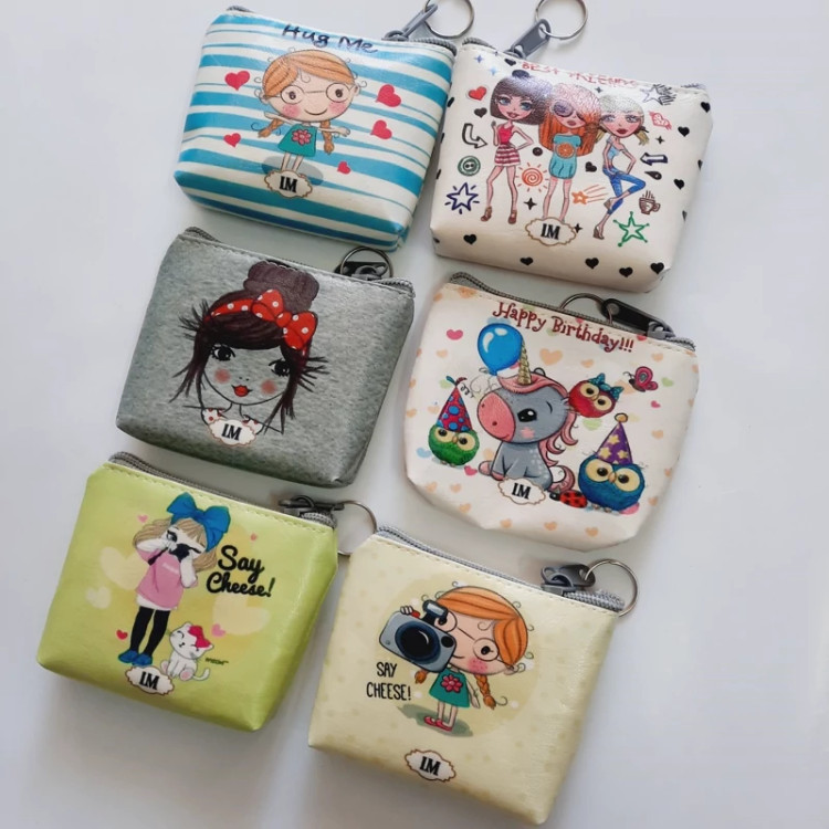 کیف فانتزی کوچک طرحدار چرمی ابعاد هشت در یازده سانت مناسب هدست کلید اکسسوری آویز کیف